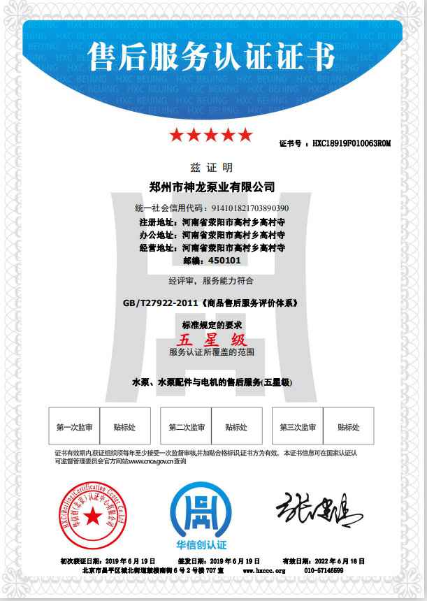 祝贺半岛网页版·网站入口-半岛online(中国)获得水泵、水泵配件与电机的五星级售后服务认证。